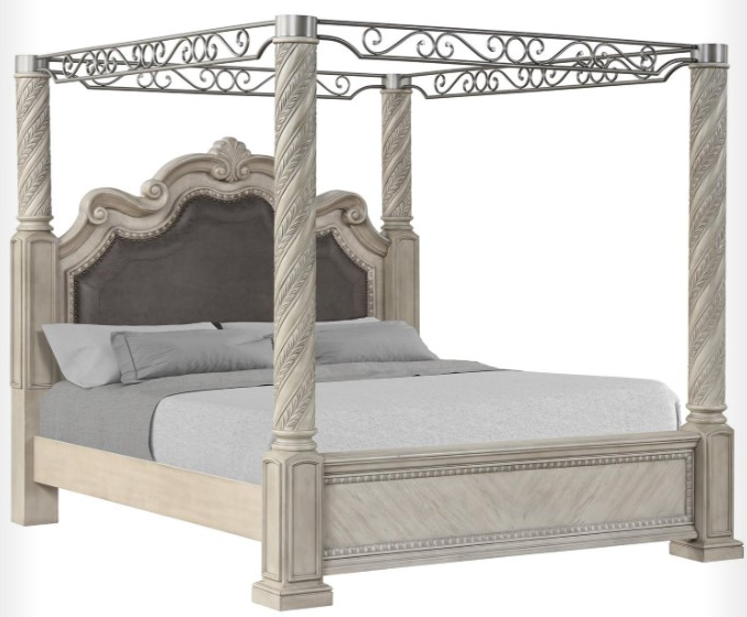 Looking for a bed that will make a bold statement in your bedroom? Look no further than the Coventry Gray Upholstered Panel Canopy King Bed! This eye-catching piece features a sleigh design to suit your style. This bed is in queen size.Read More