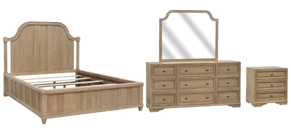 Includes bed, dresser with mirror and nightstand