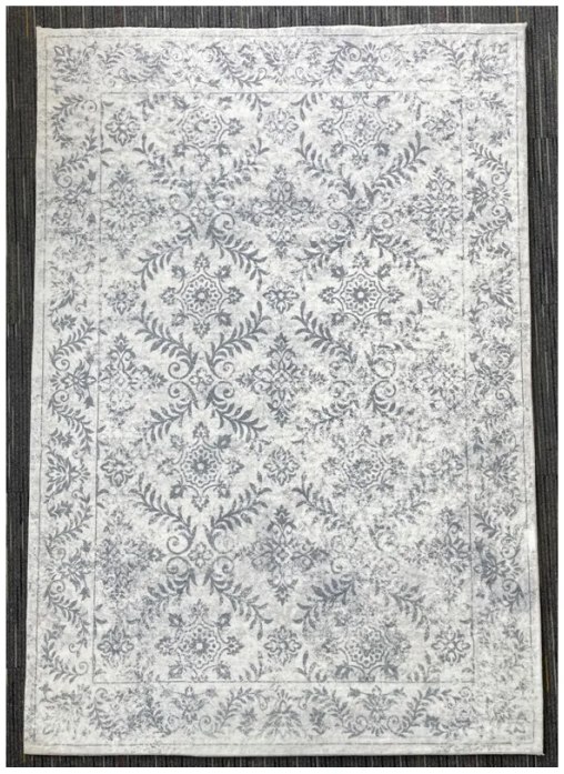 The KAS Roxy Grey Portica 7'6" x 10' Area Rug is machine-woven of polyester. Made in China. Vacuum regularly & spot clean stains. Professional cleaning is recommended periodically.Read More